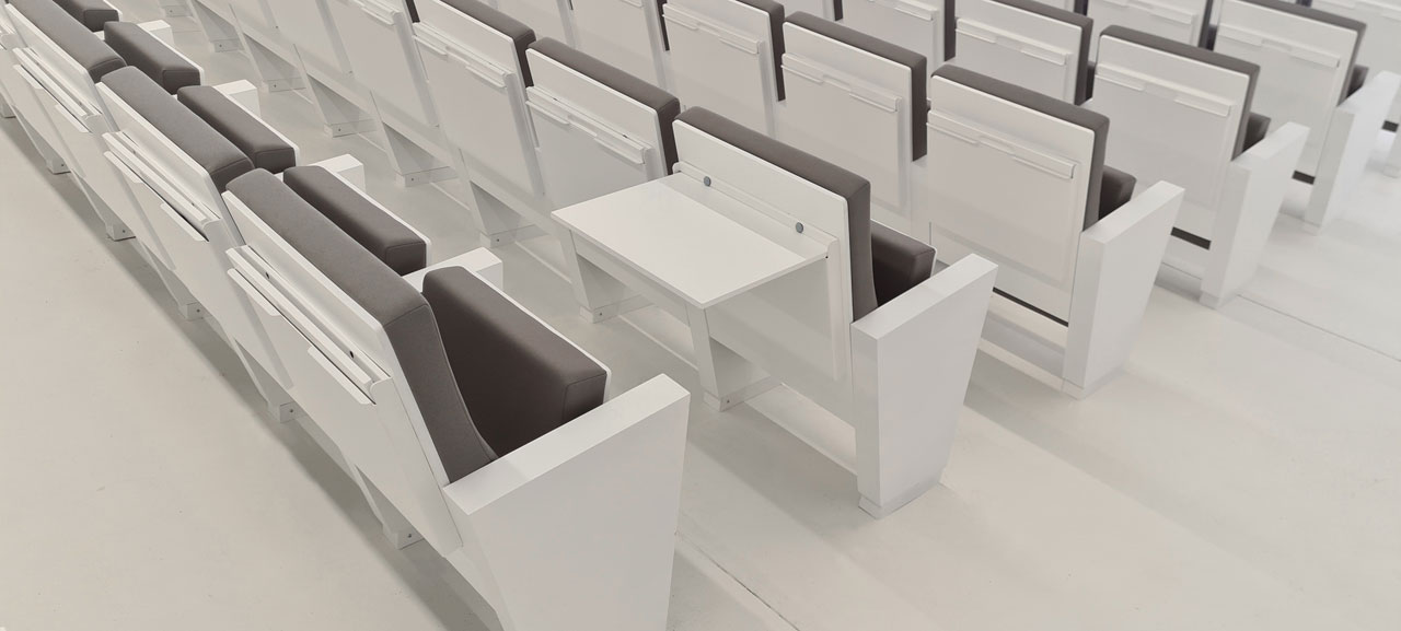 Einbau von Ezcaray Seating Sitzen des Modells YUSO, mit Schaufel und Schreibtisch.